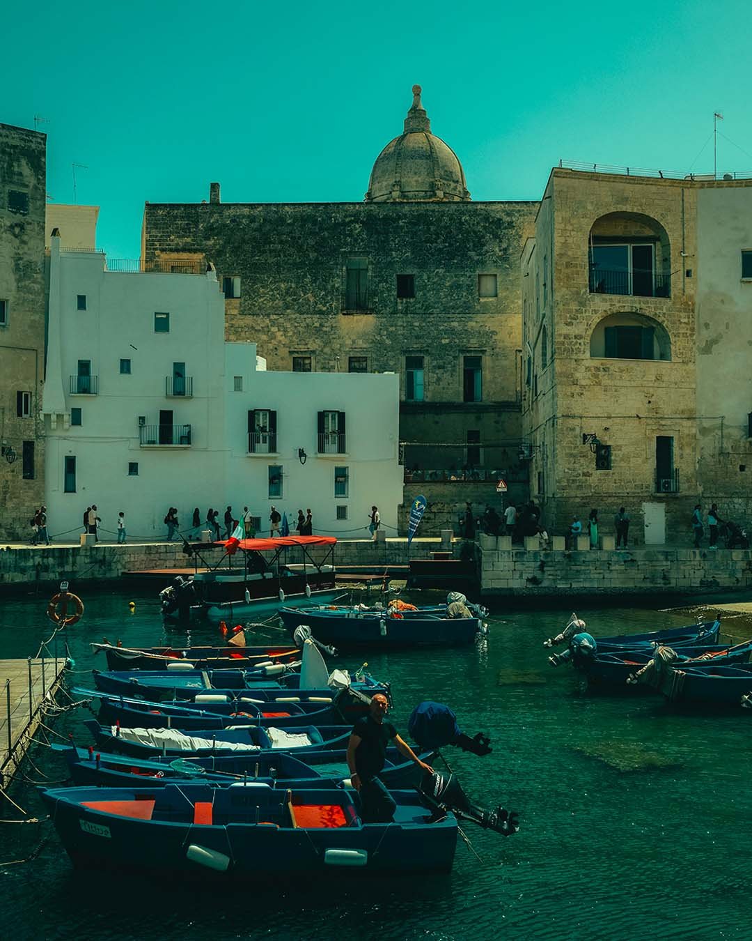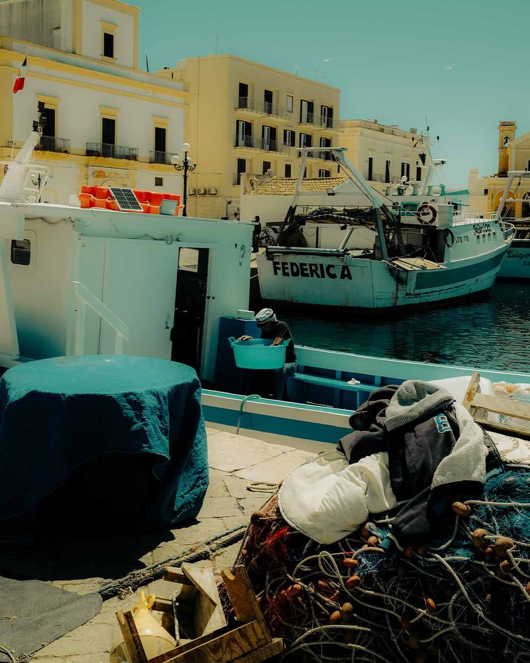 Au cœur des Pouilles, la vie s’exprime à travers une explosion de couleurs et de contrastes saisissants. Le bleu intense de la mer Adriatique embrasse le blanc éclatant des trulli, ces maisons traditionnelles aux formes uniques. Les oliviers centenaires, avec leurs troncs tortueux et leurs reflets argentés, s’enracinent dans une terre rougeoyante, baignée par la lumière dorée du soleil. Chaque ruelle animée et chaque marché débordent de vitalité, offrant une mosaïque de teintes vives et de parfums envoûtants. Dans cette région du sud de l’Italie, tout semble imprégné d’une énergie vibrante, où chaque paysage raconte une histoire de chaleur, de lumière et de vie méditerranéenne.